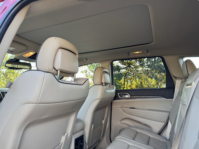 The exterior of this Grand Cherokee is finished in a striking Deep Cherry Red Crystal Pearl Coat, providing a bold and sophisticated look that stands out on any road. Inside, you will find a beautifully appointed cabin featuring Brown/Light Frost leather upholstery, offering both comfort and elegance for all passengers.
