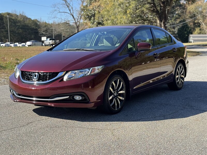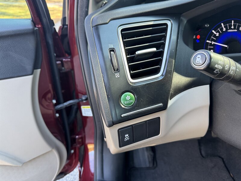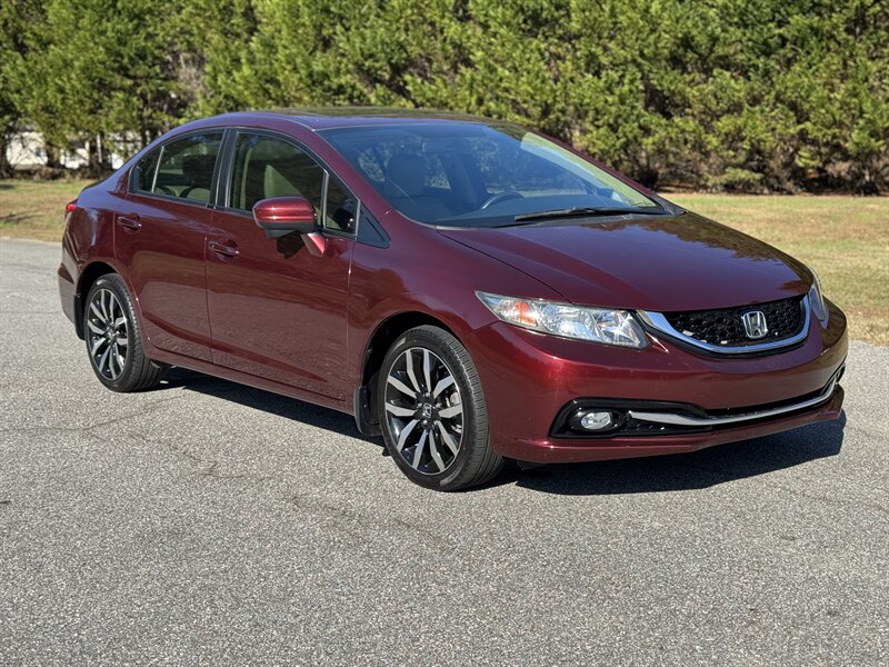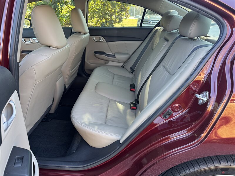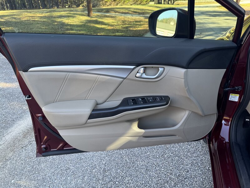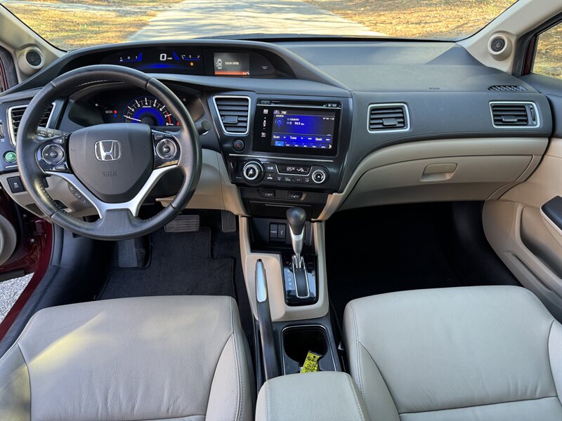 Introducing the 2015 Honda Civic EX-L, a compact sedan that combines style, efficiency, and comfort. Dressed in a striking Crimson Pearl exterior, this vehicle stands out on the road while providing a sophisticated presence. Inside, the plush Beige leather interior offers a refined atmosphere, ensuring a comfortable ride for both driver and passengers.