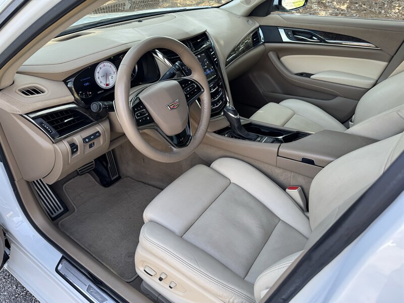 2016 Cadillac CTS Vsport Premium — 3.6L Twin Turbo V6, 420 hp / 430 lb-ft. Finished in Crystal White Tricoat with a rear spoiler and trimmed in Light Cashmere leather with Medium Cashmere accents, this CTS offers strong performance, a well-appointed cabin and clean ownership history.