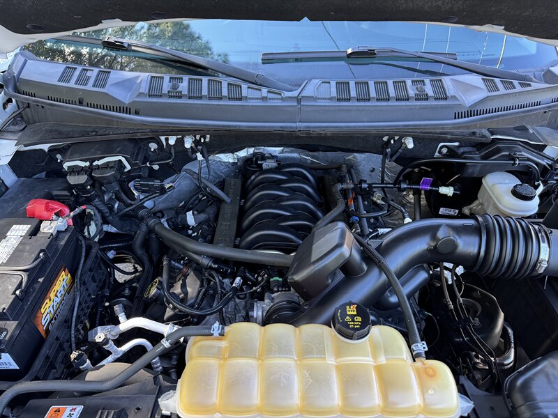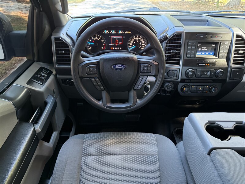The exterior of this F-150 is finished in a classic Oxford White, providing a clean and timeless look. The rugged design is complemented by a bold front grille and striking headlights, ensuring that you will turn heads wherever you go. The truck's sturdy build is matched by practical features such as a bed liner, ensuring that your cargo stays secure and protected.