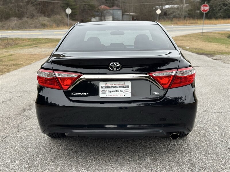 2017 Toyota Camry SE — Midnight Black Metallic exterior, Black interior. Powered by the factory 2.5L inline-4 producing 178 hp and 170 lb-ft of torque, paired with Toyota’s automatic transmission and front-wheel drive. EPA-rated at 24 MPG city / 33 MPG highway. Vehicle is in excellent overall condition and has a clean CARFAX.