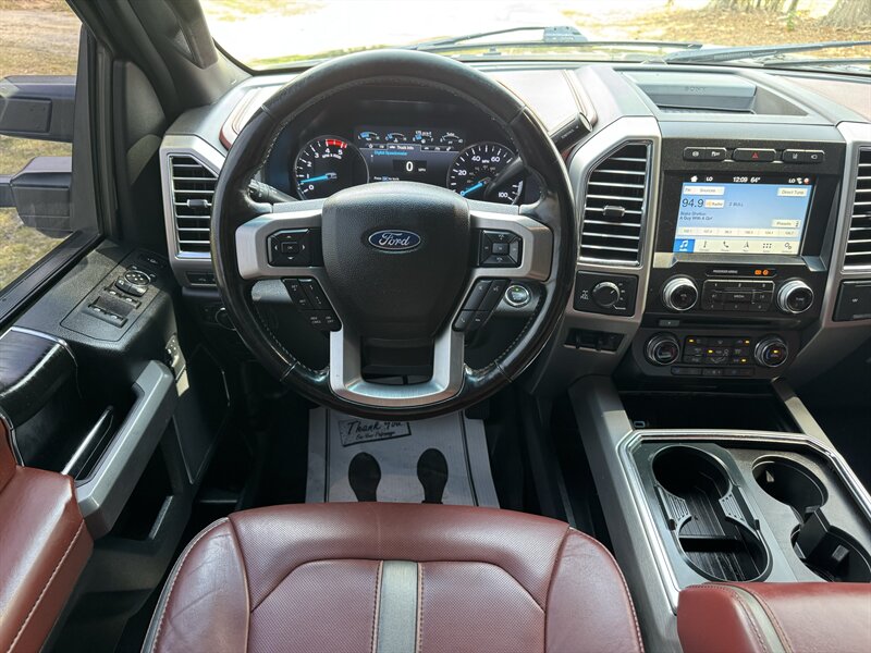 - Infotainment and convenience: Factory infotainment system with large color touchscreen, integrated controls for cameras and towing, smartphone integration capabilities (SYNC-era functionality), and a premium audio setup appropriate to the Platinum trim. Keyless entry and power accessories for windows, mirrors, and locks.