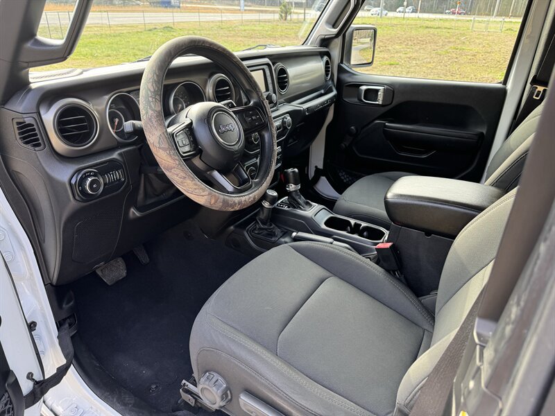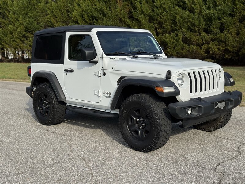 2018 Jeep Wrangler Sport — Bright White Clear Coat exterior with Black cloth interior. Powered by the factory 3.6L V6 Pentastar engine producing 285 hp and 260 ft-lbs of torque. EPA-rated fuel economy is 17 MPG city and 25 MPG highway. This Wrangler is in excellent overall condition and comes with a clean CARFAX report.