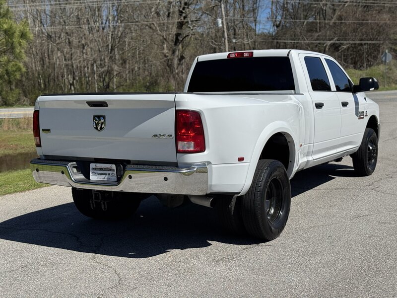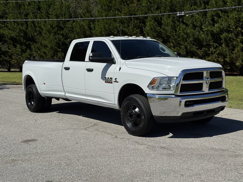 This 2018 RAM 3500 Tradesman is configured and equipped for demanding towing and hauling duties, combining the high-torque Cummins diesel, strengthened axle gearing, fifth-wheel/gooseneck readiness and dual rear wheels to deliver a capable, work-ready heavy-duty truck.