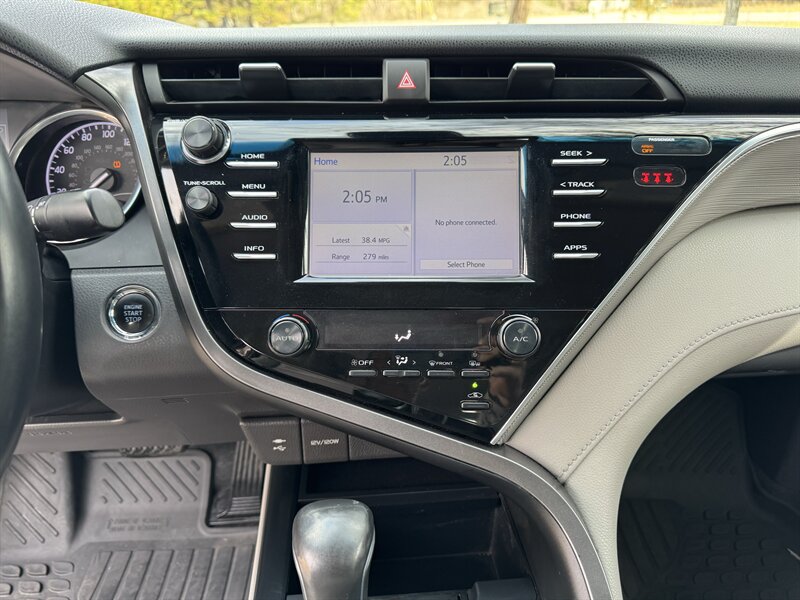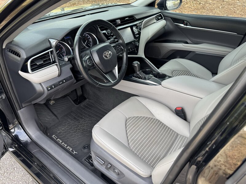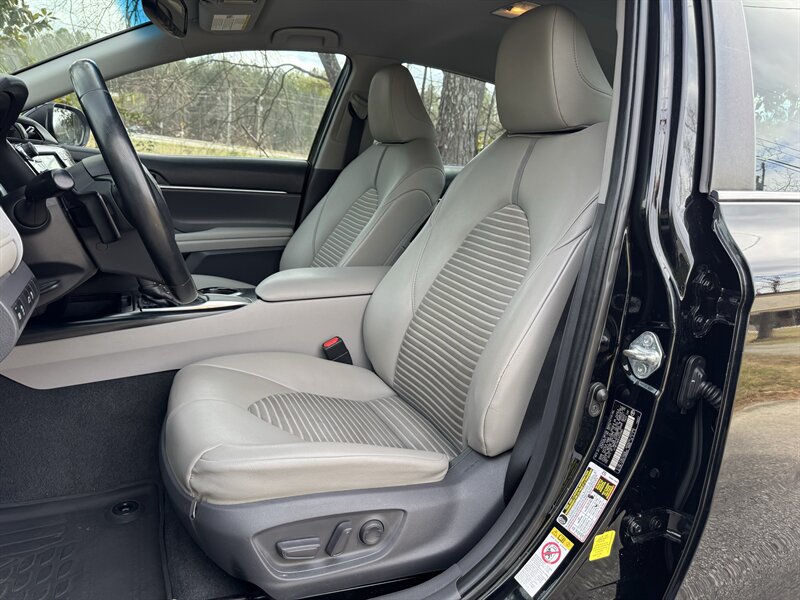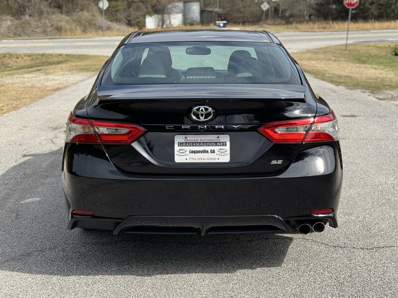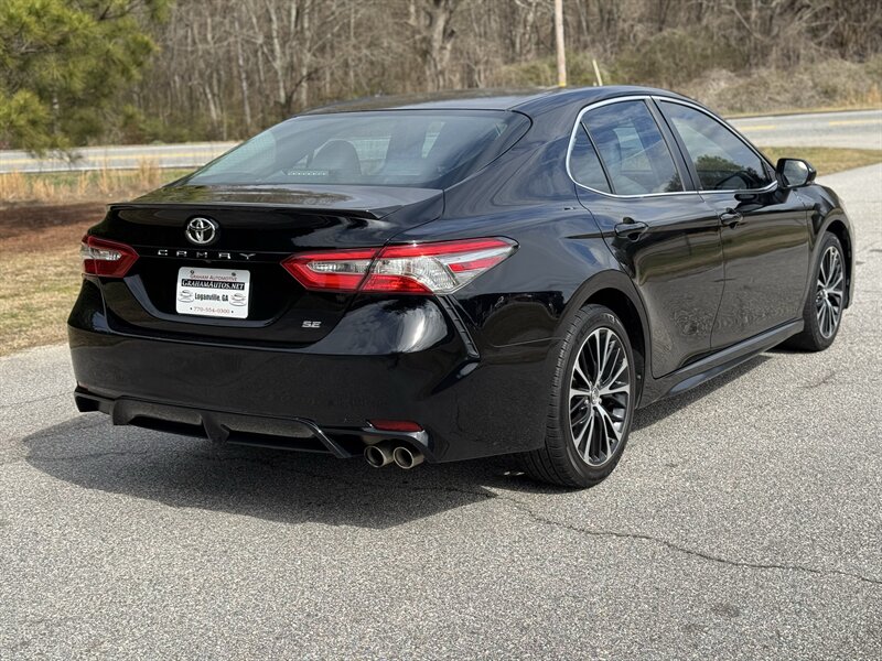 2018 Toyota Camry SE ? Midnight Black Metallic exterior with Ash leather-trimmed interior. Powered by a 2.5L I4 engine producing 203 hp and 184 lb-ft of torque, this Camry delivers an EPA-estimated 28 MPG city / 39 MPG highway. The vehicle is in excellent overall condition.Factory-standard equipment (highlights):- Toyota Safety Sense-P suite: Pre-Collision System with Pedestrian Detection, Lane Departure Alert with Steering Assist, Dynamic Radar Cruise Control, and Automatic High Beams.- Exterior: sport-oriented SE styling with 18-inch alloy wheels, projector-style headlights with LED daytime running lights, and a clean, aerodynamic profile in Midnight Black Metallic.- Interior: Ash leather-trimmed seating surfaces with supportive bolstering, comfortable rear seating with 60/40 split-folding rear seatback for expanded cargo flexibility.- Comfort and convenience: power-adjustable driver?s seat, automatic climate control (dual-zone on many SE models), remote keyless entry with push-button start, power windows and door locks, and an integrated rearview camera.- Infotainment and connectivity: touchscreen audio system with Bluetooth hands-free phone and audio streaming, USB and auxiliary inputs, AM/FM audio, and steering-wheel-mounted audio and phone controls.- Chassis and driving: sport-tuned suspension and responsive handling typical of the SE trim, combined with Toyota?s stability and traction control systems and an anti-lock braking system (ABS).- Safety: comprehensive passive safety features including front, side and curtain airbags, and tire pressure monitoring system.This Camry SE offers a balance of fuel efficiency, everyday practicality, and the sport-oriented touches of the SE trim, finished in a classic black exterior and a clean Ash leather-trimmed interior.Come find out what sets us part from the rest. We are the only Pre-owned specialist for TrustDale.com Our low overhead means savings to you! We make purchasing a vehicle what it should be-an enjoyable experience! Extended Service contracts Available. Second Chance Financing Available on select vehicles. WE WANT YOUR BUSINESS AND WILL WORK FOR YOU! CALL TODAY!Graham Automotive2760 Still RdLoganville, GA 30052(770) 554-0300
