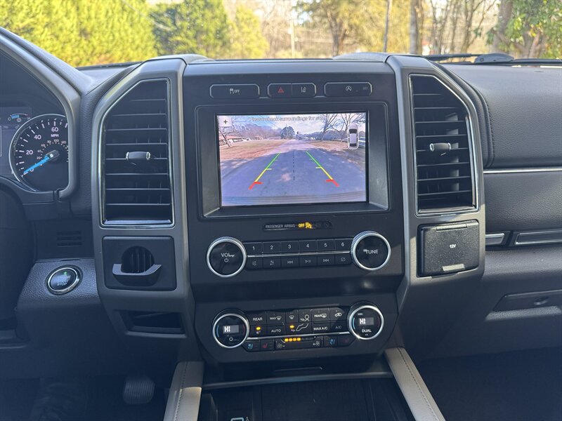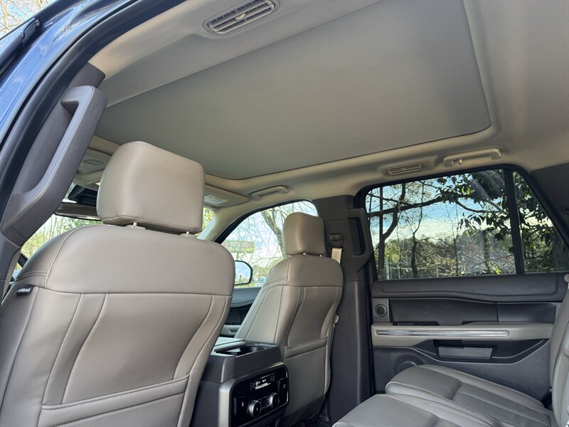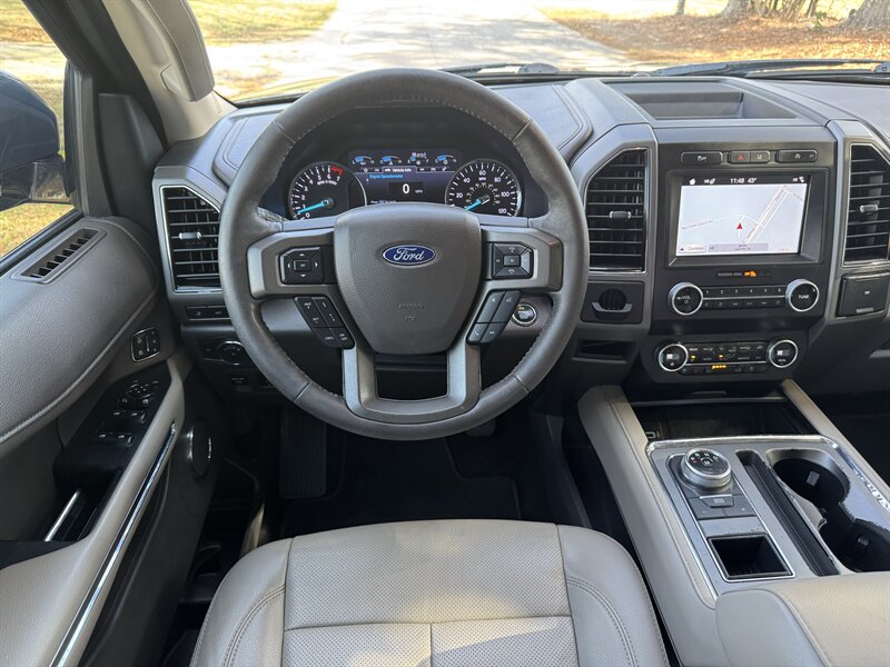 2019 Ford Expedition XLT — Blue Metallic exterior, Medium Stone leather interior. Powered by a 3.5L EcoBoost Twin-Turbo V6 (375 hp / 470 lb-ft). EPA fuel economy 17 MPG city / 24 MPG highway. Equipment Group 202A and Driver Assistance Package included. Excellent overall condition with a clean CARFAX.