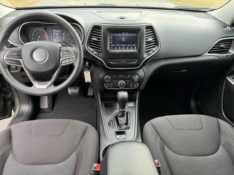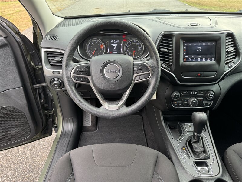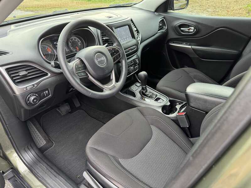 2019 Jeep Cherokee Latitude — Olive Green Pearl Coat exterior with Black cloth interior. Powered by the 2.4L I4 (Tigershark) producing 180 hp and 171 lb-ft of torque, and paired with Jeep’s 9-speed automatic transmission. This Cherokee has clean CARFAX history, is in excellent overall condition, and has below 68,000 miles (averaging under 9,000 miles per year). EPA fuel economy is 22 MPG city / 31 MPG highway.