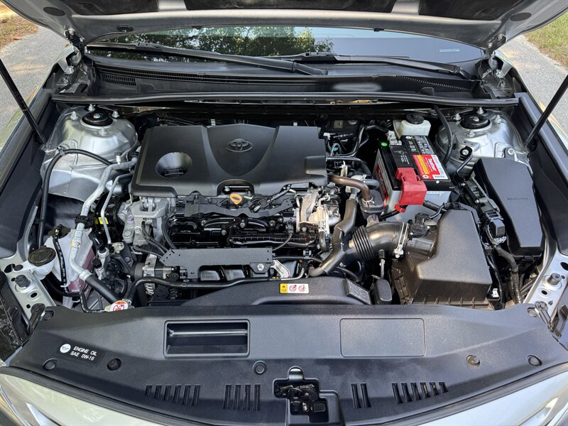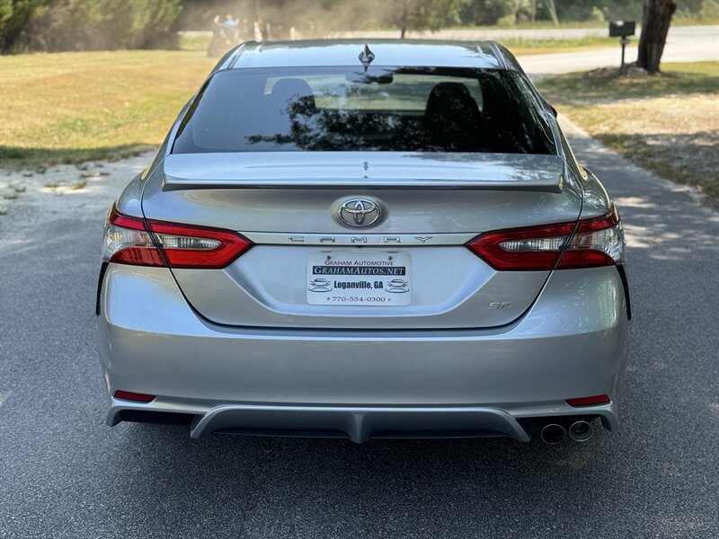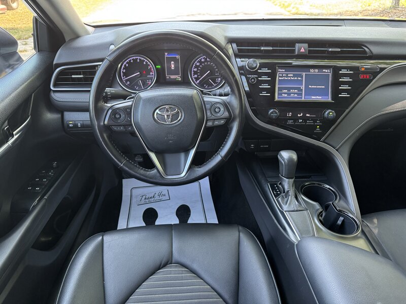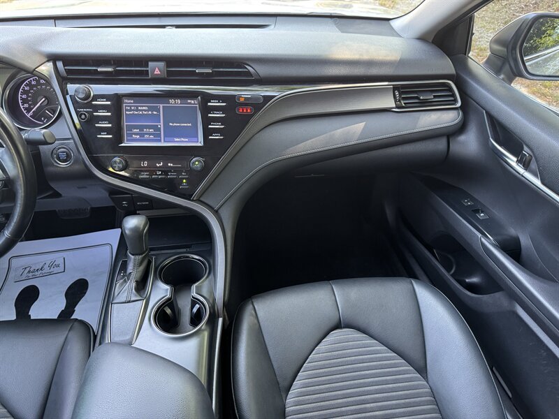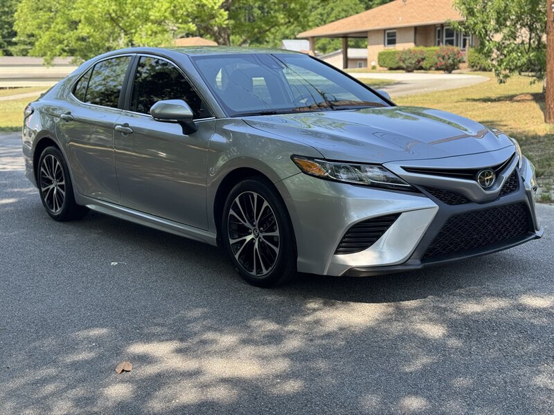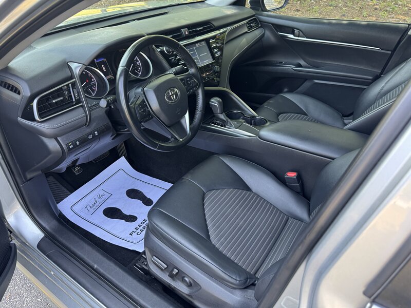 2019 Toyota Camry SE — Celestial Silver Metallic exterior, Ash interior. Powered by a 2.5L inline-4 producing 203 hp and 184 ft-lbs of torque, this Camry delivers a balance of everyday performance and efficiency, rated at 28 MPG city and 39 MPG highway. The vehicle is in excellent overall condition.