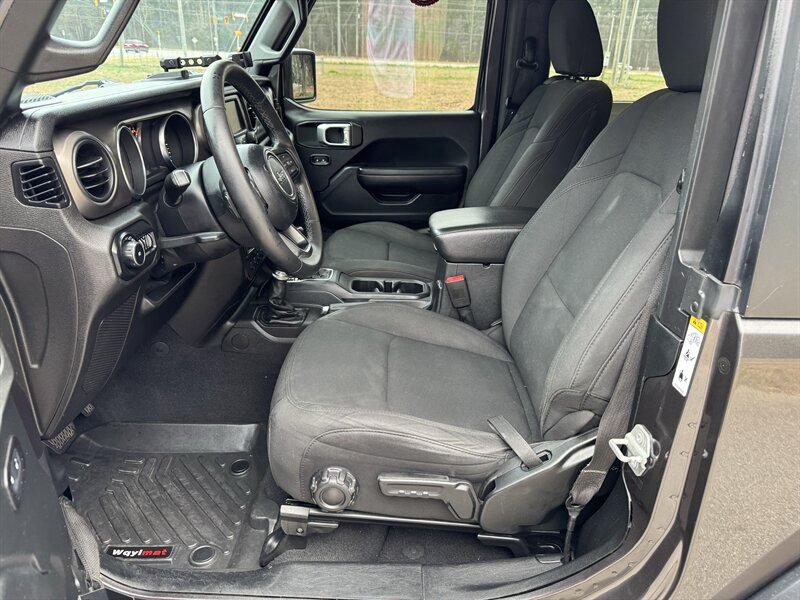 2020 Jeep Wrangler Sport S — Granite Crystal Metallic Clear Coat exterior, Black cloth interior. Powered by the 3.6L V6 Pentastar engine producing 285 hp and 260 lb-ft of torque. This Wrangler is in excellent overall condition with a clean CARFAX report and well-maintained service history. Mileage is below 42,000 miles (averaging under 6,000 miles per year). EPA fuel economy is approximately 17 MPG city and 25 MPG highway.