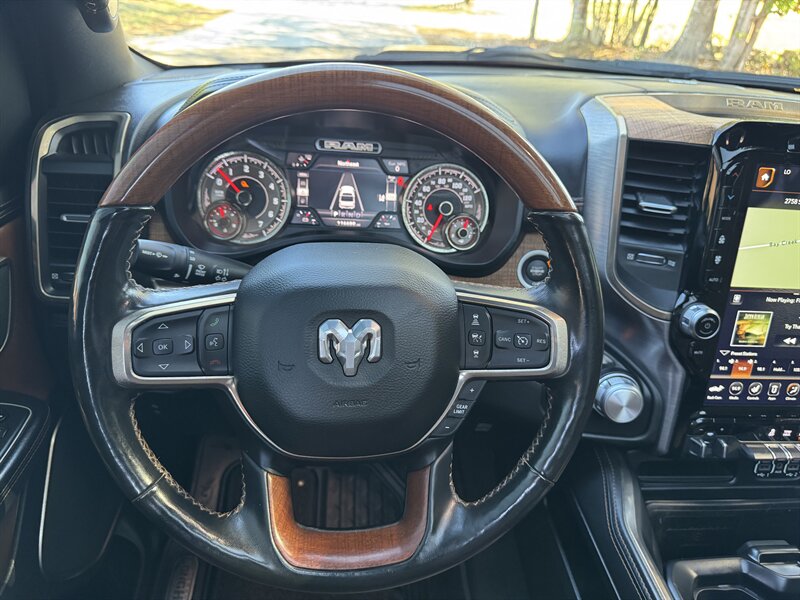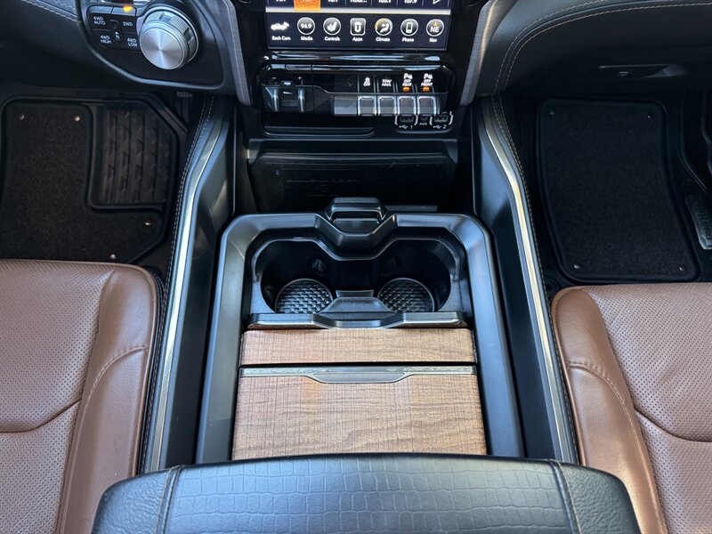 Performance-wise, the RAM 1500 Laramie Longhorn is equipped with a 3.92 axle ratio, which enhances towing capacity and overall handling. With a fuel efficiency rating of 15 MPG in the city and 21 MPG on the highway, this truck strikes a balance between power and efficiency.