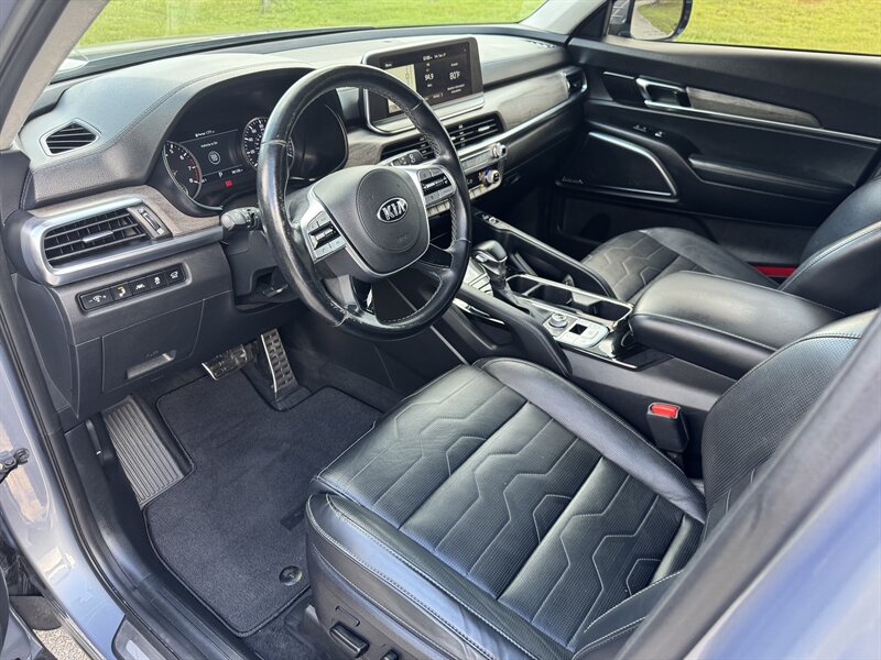 The 2021 Kia Telluride SX is a sleek and powerful SUV that offers a seamless blend of style and performance. Under the hood, you'll find a robust 3.8L V6 engine, delivering 291hp and 262ft. lbs. of torque for a smooth and responsive driving experience. The factory default features of this vehicle are designed to enhance comfort, convenience, and safety on the road.