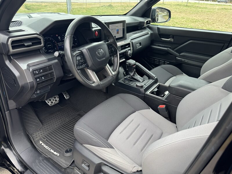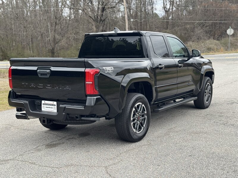 2024 Toyota Tacoma TRD Sport — Black exterior with Black cloth interior. Powered by Toyota’s 2.4L Turbocharged I4 producing 278 hp and 317 lb-ft of torque, this Tacoma delivers a responsive driving experience while returning an EPA-estimated 21 MPG city and 26 MPG highway. The truck is in excellent overall condition.